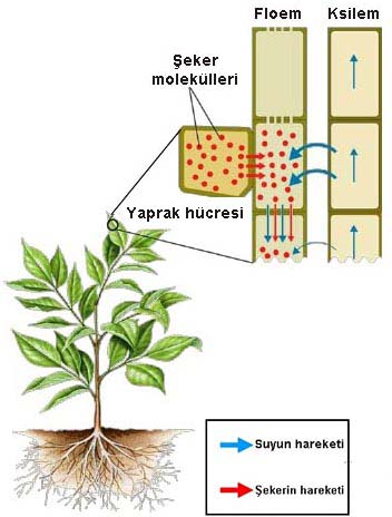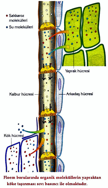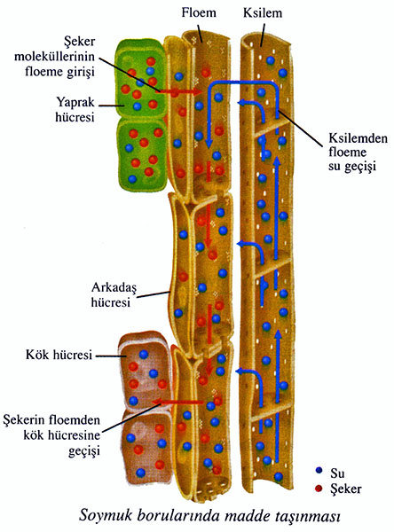 Bitkilerin yapraklarında fotosentez ile oluşturulan glikoz ile köklerinde sentezlenen aminoasit gibi organik besinler bitkinin diğer kısımlarına soymuk borularıyla taşınır.