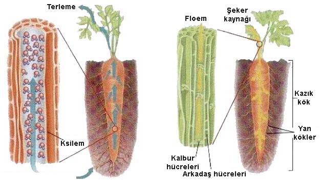 vOdun borularında su tek yönlü olarak kökten yapraklara doğru taşınır.