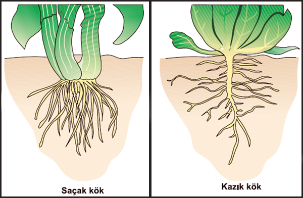 Kökler yapı ve görevlerine göre kazık ve saçak kök olarak iki gruba ayrılır.