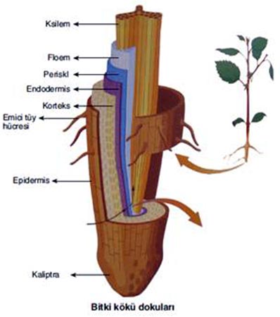 >Kökteki, büyüme bölgesi sürekli bölünen meristamatik hücrelerden oluşur. Bu hücrelerin bölünmesiyle kökteki diğer dokular meydana gelir.