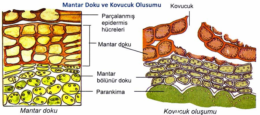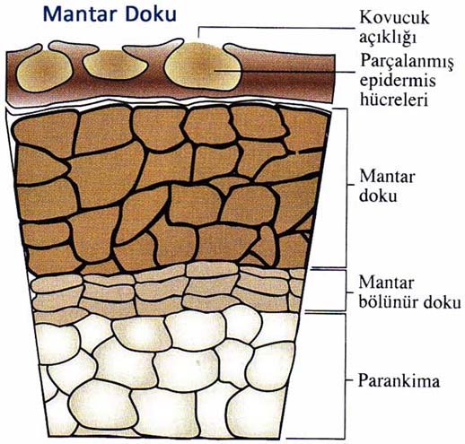 Yaşlanan ve kalınlaşan bitkilerde epidermisin yerini mantar doku (Periderm) alır.