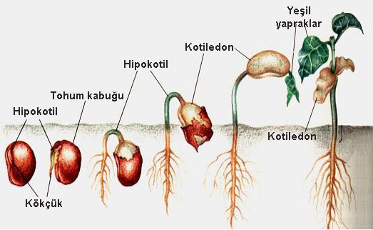 Çenekler embriyonun bir uzantısı olup, çimlenme sırasında embriyoyu besler.Tohumlar, minimum (bazal) metabolizma yaparak uzun süre canlı kalabilirler. Bu süreye uyku hali denir.