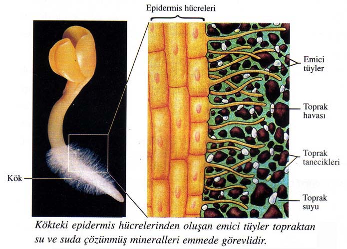 d) Emme tüyleri:Su ve suda erimiş organik ve inorganik maddeler emen tüylerdir.