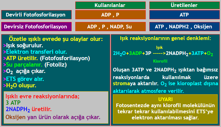 >Elektronlar hem fosforilasyon, hem de NADPH2 elde etmek amacı ile kullanılır.