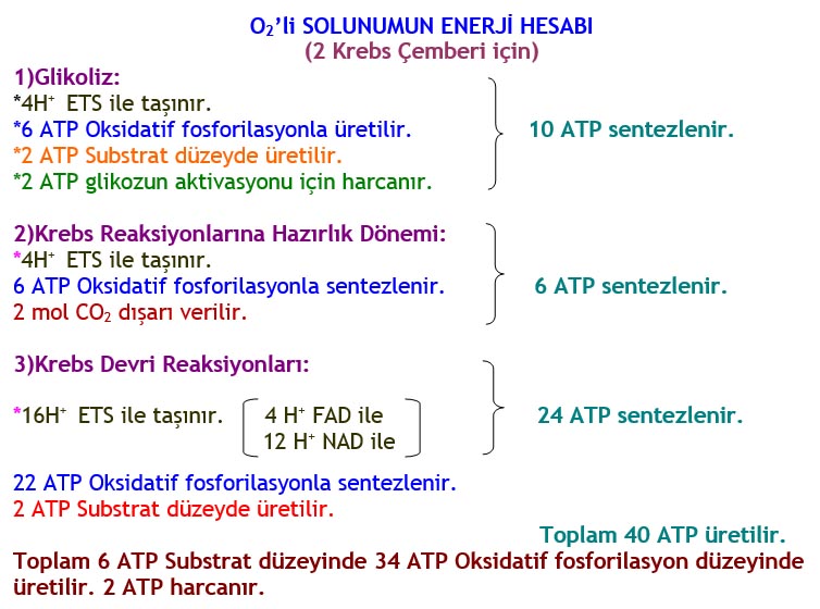 Oksijenli solunumda H atomu sayıları