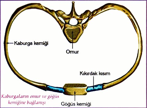 eklemlerle bağlanmıştır.8. , 9. ve 10. çift kaburga kemikleri kıkırdak parçalarla önce birbirlerine sonra 7. kaburga çiftine bağlanarak göğüs kafesini oluşturmaktadır.