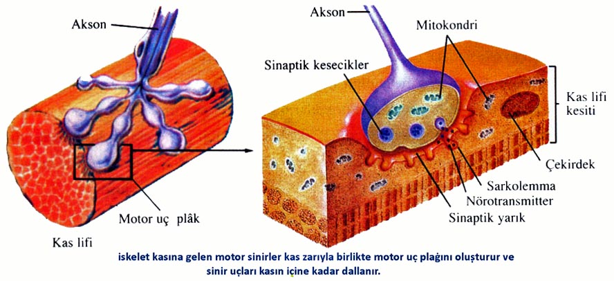 ÄMotor nöronların kastaki uçları olan motor uç plakları, sinir teli ile kas teli arasında oluşmuş bir çeşit sinapstır.
