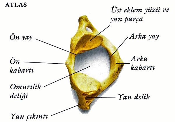 Boyun omurlarından ilkine Atlas omuru denir. Kafatası atlasa oturmuştur. Eksendeki bir çıkıntı ise atlasın içine girmiştir. Bu durum başın hareketini kolaylaştırır.
