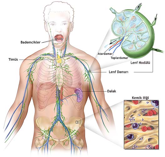 Bademcikler, bağırsak lenf düğümleri, kör bağırsağın lenf düğümü (apandis) ve kaslardaki lenf düğümleridir.