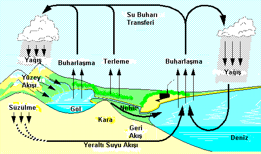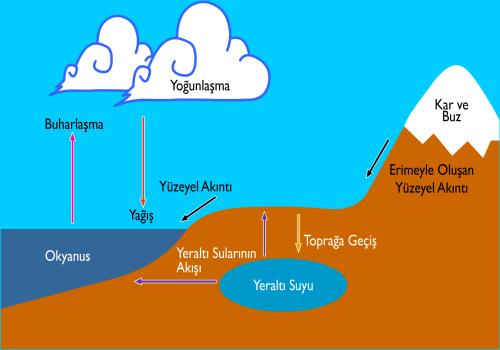 Yeryüzünün 3/4'ü sularla kaplıdır. Doğanın değişik bölgelerine çeşitli şekillerde dağılmış olan su kütlelerinin büyük bir bölümünü okyanus ve denizler oluşturur. Su doğada devamlı olarak devir yapar. Toprak, deniz, göl ve nehirlerdeki sular güneşin etkisi ile buharlaşır ve atmosfere verilir. Ayrıca bitki ve diğer canlılardan terleme yolu ile buharlaşan su da atmosfere karışır.