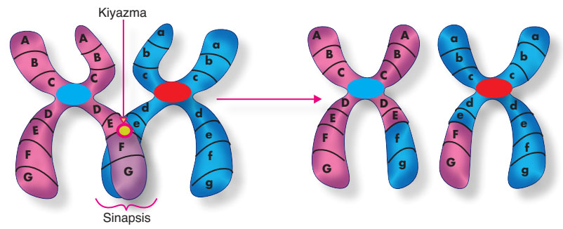 Homolog kromozomların birbiriyle oluşturdukları temas noktalarına kiyazma denir.