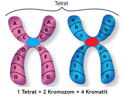 Homolog kromozom ve kromatitlerin kısalıp kalınlaşmasıyla oluşan dörtlü yapıya tetrat denir. Tetratların sayısı, mayoz geçirmekte olan hücrenin haploit kromozom sayısına eşittir.