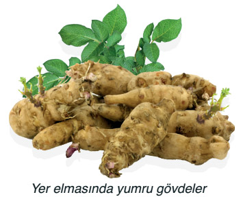 Bazı bitkilerin toprak altında bulunan ve besin depolayan şişkin gövdelerine yumru denir.