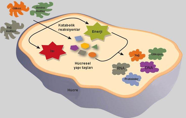 Hücrede büyük moleküllerin ve karmaşık bileşiklerin enzimlerin yardımıyla daha basit maddelere parçalanması olayına katabolizma denir.