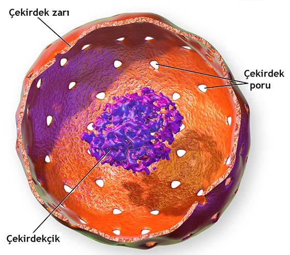 Çekirdek (nükleus), hücredeki tüm yaşamsal olayların yönetim ve denetim merkezidir.