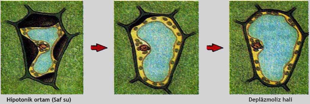 Plazmolize uğrayan hücrenin, hipotonik çözeltiye konulduğunda kaybettiği suyu alıp eski haline dönmesine denir.