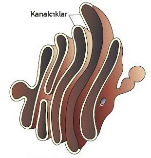 >Golgi aygıtını oluşturan keselerin etrafında bu keseciklerden oluşmuş irili ufaklı kofullar bulunur.