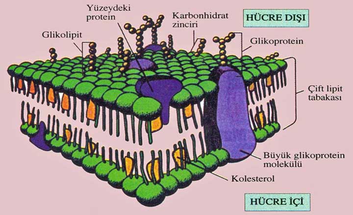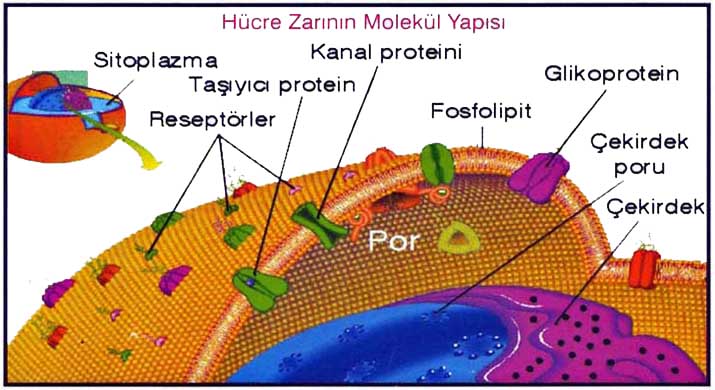 Hücre zarının özelliği bulundurduğu protein, lipit ve glikoproteinlerin dağılışına ve sayısına bağlıdır.