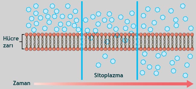 Taşıma madde molekülleri yoğunluğunun çok olduğu ortamdan az olduğu ortama doğru olur.