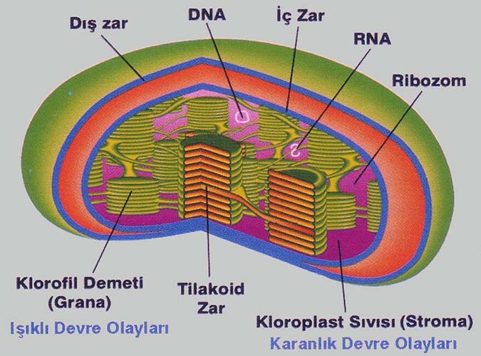 -Kloroplastların kendilerine özgü DNA’ları bulunur ve çekirdeğin kontrolünde bölünme özellikleri vardır.