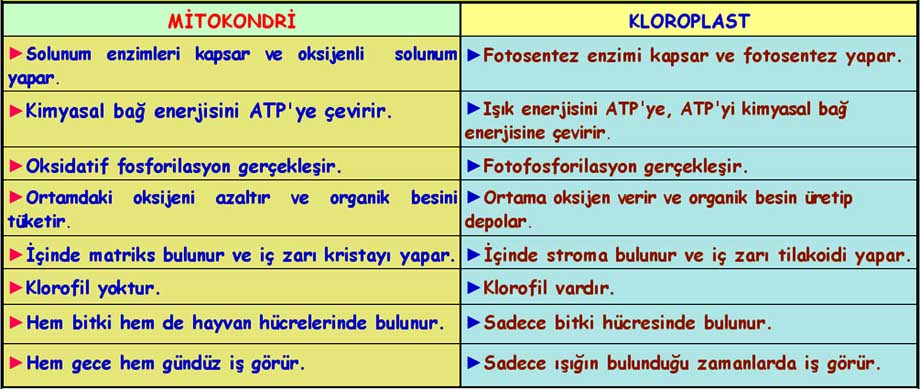 MİTOKONDRİ İLE KLOROPLAST ARASINDAKİ ORTAK ÖZELLİKLER