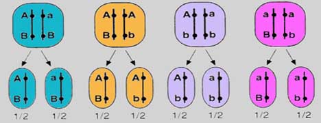 Buradaki dört ayrı canlının hepsinde bütün karakterler homozigot olduğu için 1’er çeşit gamet oluştururlar. O halde homozigot canlılarda genlerin bağımsız veya bağlı olması gamet çeşidini değiştirmez. Her iki durumda da daima bir çeşit gamet oluşur.