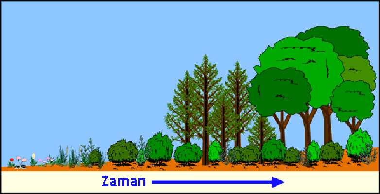 Belirli bir zaman periyodu içinde belli bir alanda farklı komünitelerin birbirini izlemesidir. Zamanla baskın türlerin diğer türlerle yer değiştirmesidir.