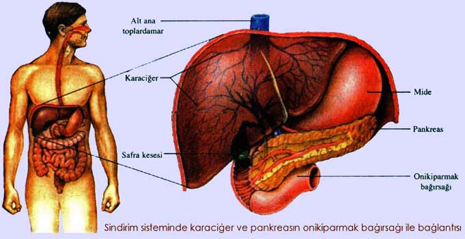 ðKarın boşluğunda ve midenin sağ üst kısmında bulunan koyu vişne renkli bir organdır.