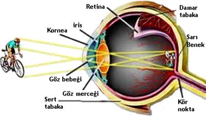 ðDaha sonra retina üzerinde ters bir görüntü meydana getirir.