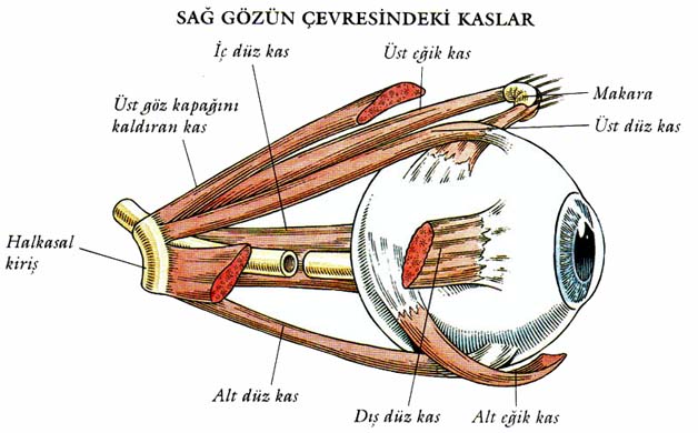 göz yuvarlağını göz çukuruna bağlayan hareketi sağlayan kaslardır.