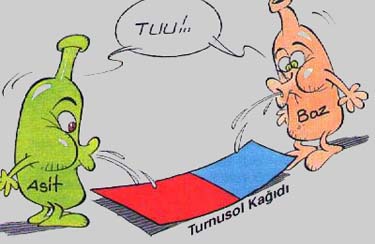 Turnusol kağıdının rengini kırmızıya çevirirler.