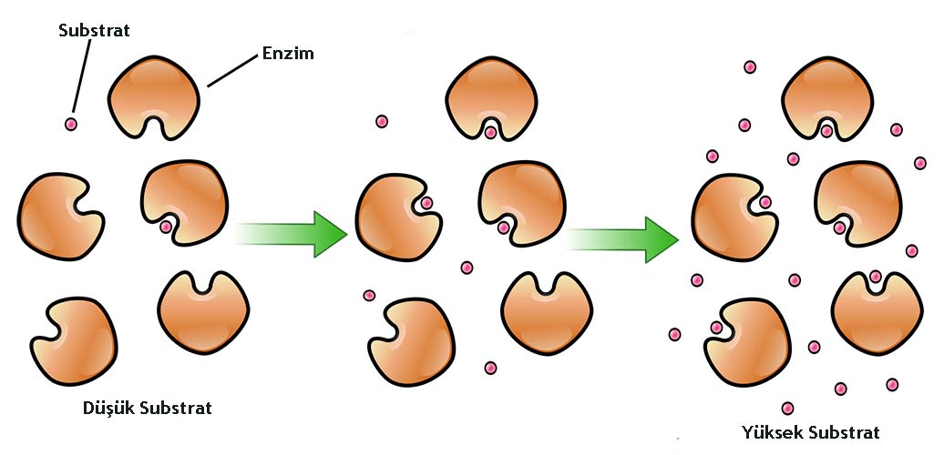 Tepkime hızı en yüksek noktaya ulaştığında enzim substrat ile doymuş demektir.