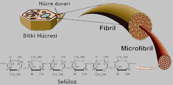Fotosentezle oluşan glikozlar bitki hücre zarının dışında birikerek selüloz hücre duvarını (çeperi) oluştururlar.
